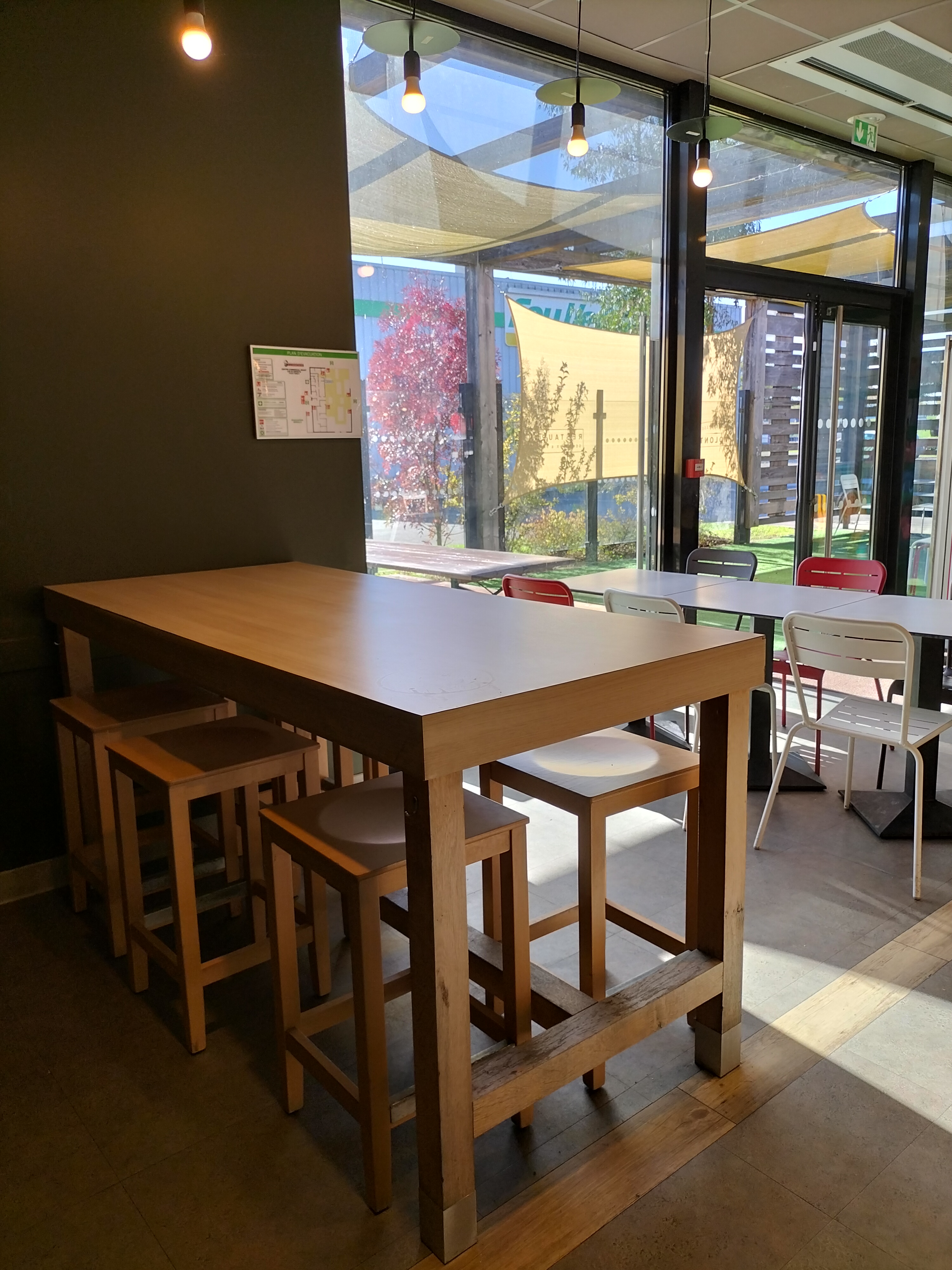 Ont adorent manger à la bonne heure cuisson des viandes parfaite. Les tables et chaises sont bien disposer et permettent une largeur espacer suffisante