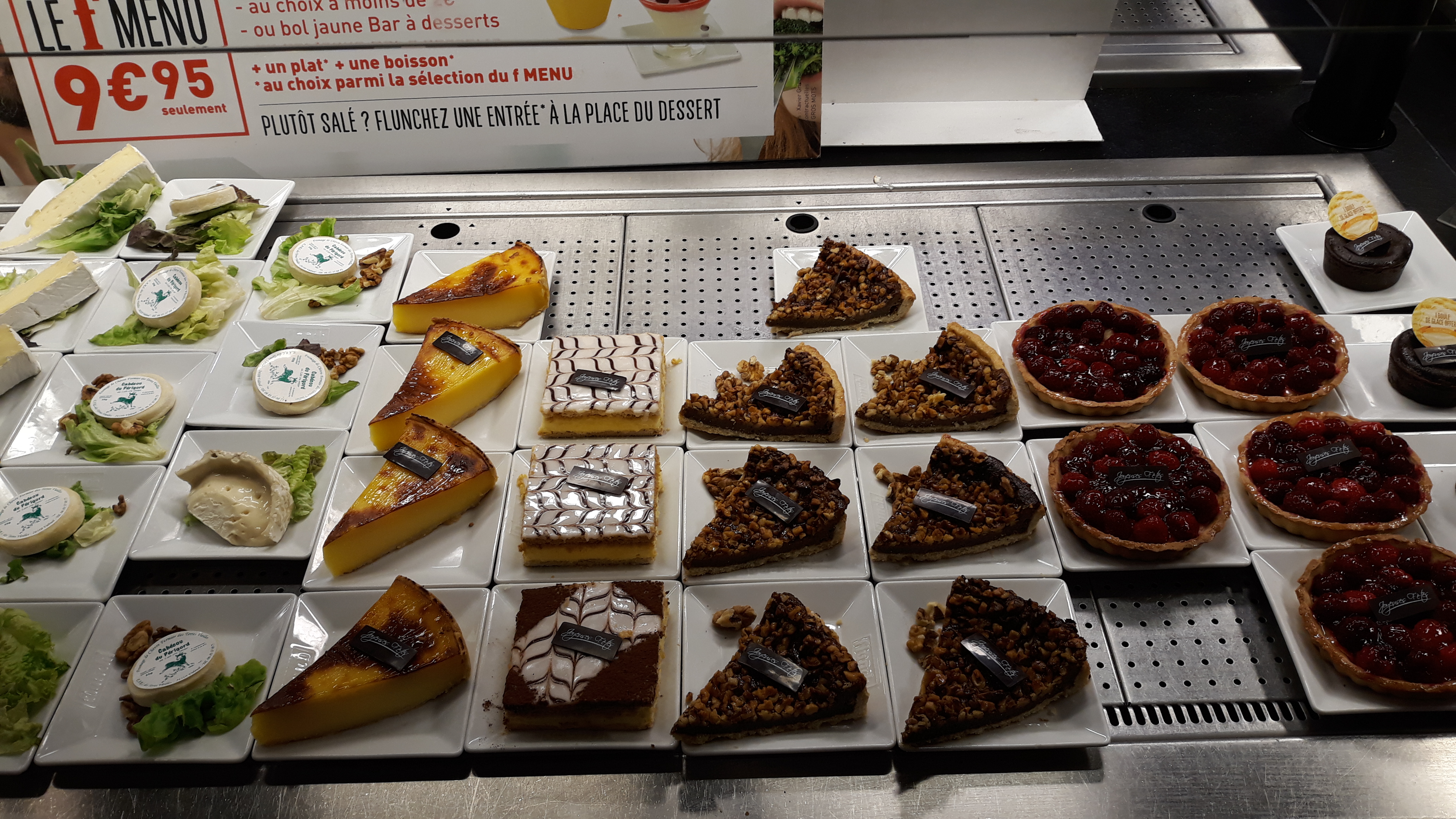 Première fois que je venais à cette cafétéria, le choix des entrées était un peu juste, ça serait cool d'avoir un buffet comme les fruits frais pour les crudités, on pioche un peu de carottes, de concombre, de maïs, etc, bref on se fait sa petite salade. Pour les plats chauds, j'ai galèré pour trouver un truc pas trop lourd (j'ai pris du poisson), beaucoup de plats en sauce. Des légumes, des pâtes, du riz, c'est bien, pas mal de choix, on peut se faire son petit mélange, les frites sont bonnes. Pour les desserts, c'est juste aussi en choix. C'est vrai que j'étais habitué au cafétéria de grandes villes, avec des buffets de folie. Franchement pour moi, le buffet salade et des plats plus légers (genre filets de poissons) en plus et c'est cool.