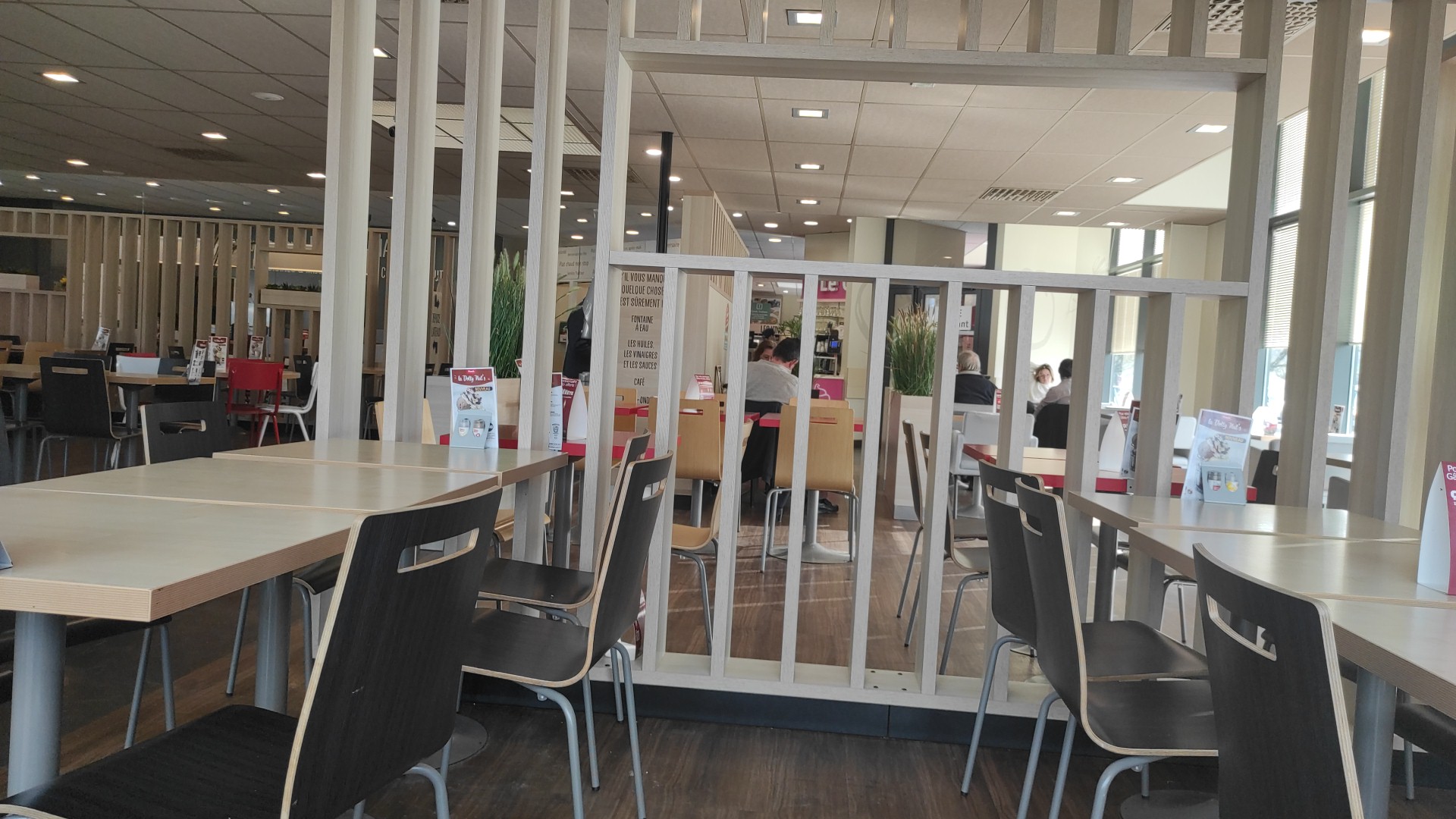C'est à ce demander ou il on appris à cuire leurs steaks hachés, nous n'avons pas la même conception du saignant, une fois recuit sur demande (au passage j'avais plutôt l'air de déranger le préposée à la cuisson), il faut laisser la place au client, j'ai voulu aller chercher un café, on c'est presque jeter sur mon plateau pour le débarrassé, quand j'ai vu sa, je suis partir le boire dans la galerie marchande de Leclerc !!!!!, pas très commerciale, ou alors faite des tables pour une personne ..... on pourra rester plus longtemps.