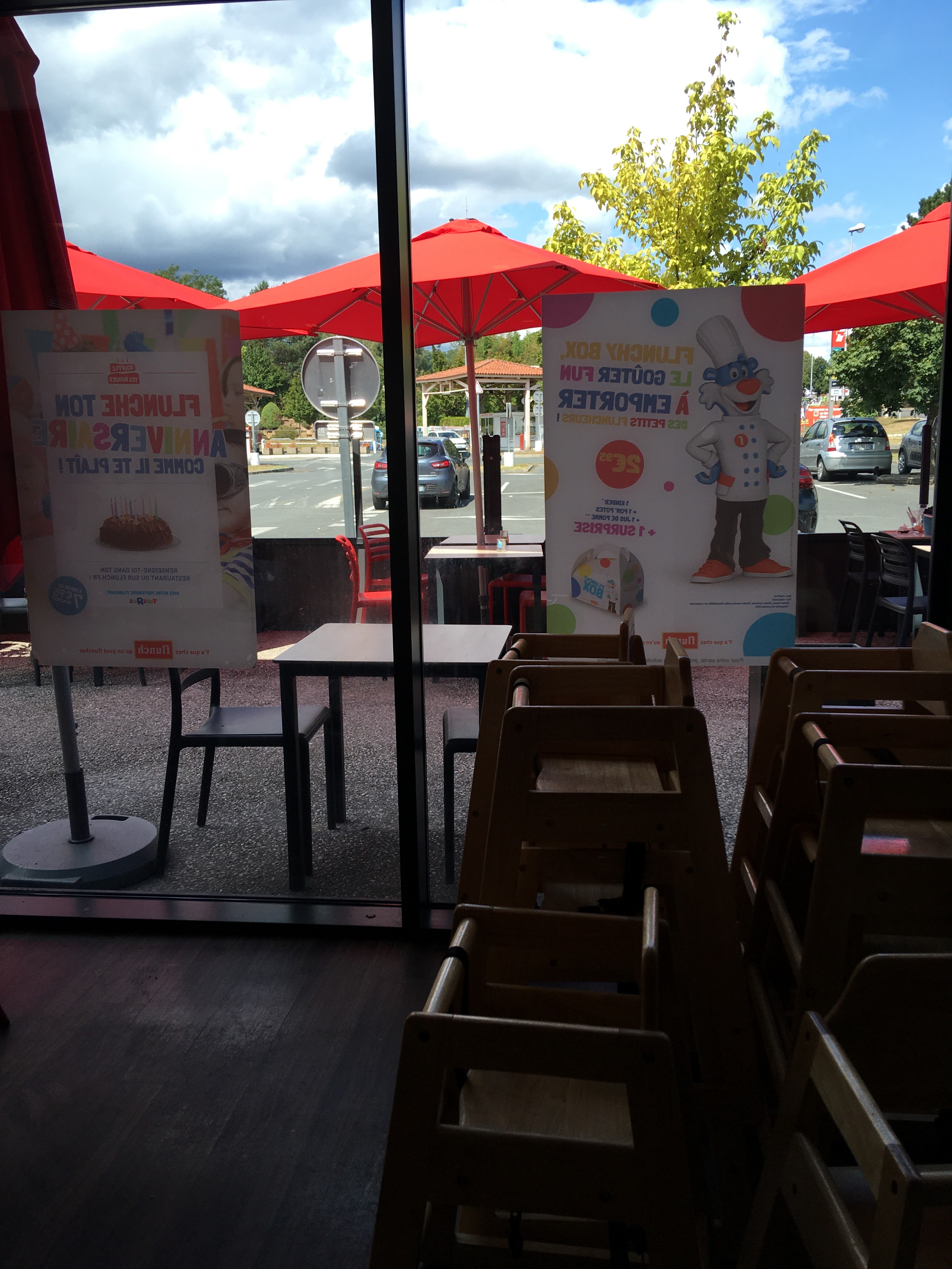 Très déçue. Rien à voir avec le Flunch que j'ai connu à ses débuts. Plat chaud servi froid. Hamburger qui ressemble à tout sauf à un vrai hamburger, se rapprochant du surgelé 1er prix et taille enfant, les frites froides également. Poireau qui baigne dans la moutarde au lieu de la vinaigrette en entrée. Tiramisu insipide au goût de flotte. Bref, je n'y retournerai pas.