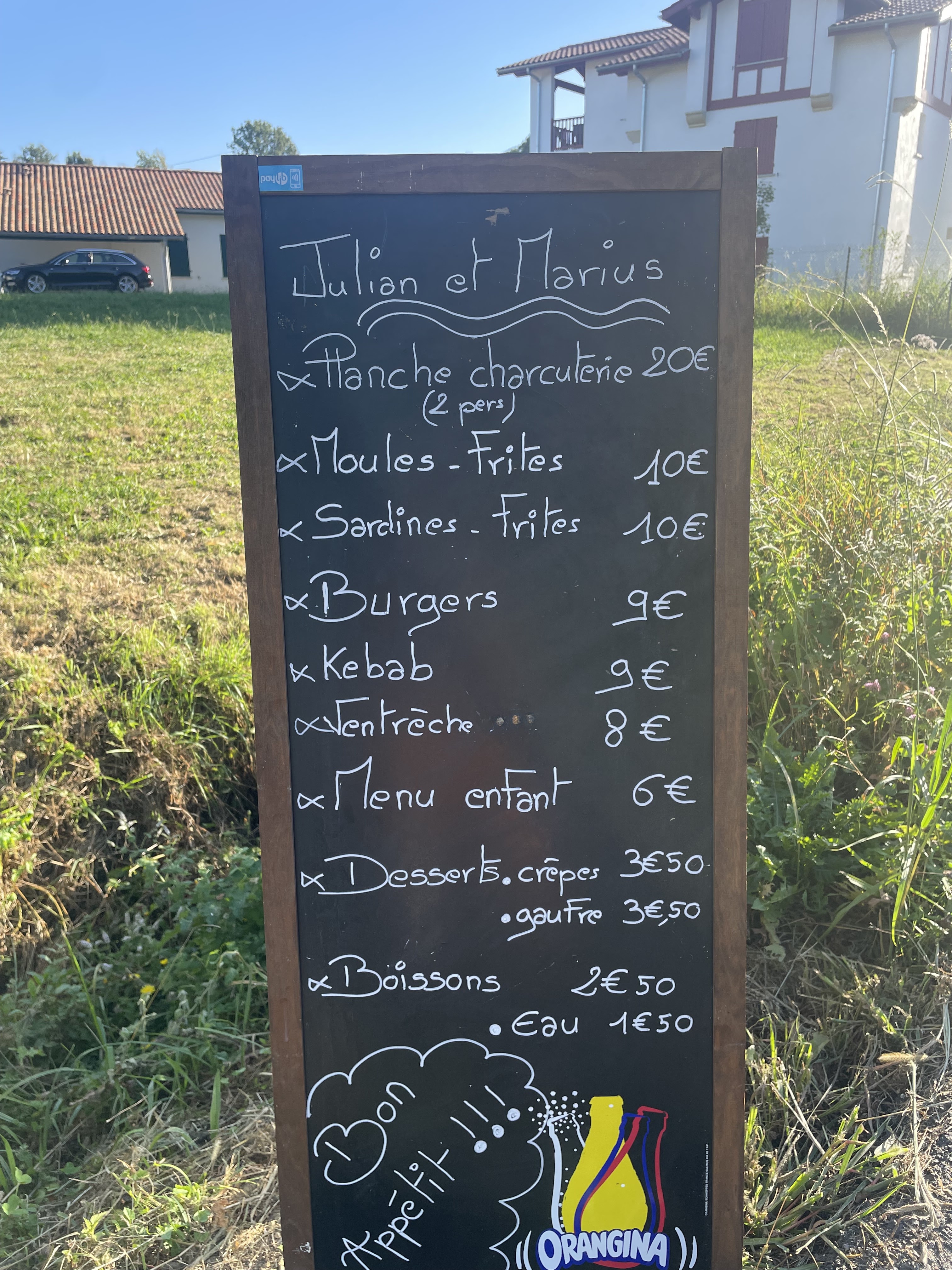 Lieu de détente et de bonne humeur avec des tables en bois et des food-trucks. Super ambiance près de la plage d'Erromardie Restauration sur place ou à emporter ! Je recommande la cuisine de Julian et Marius qui proposent des hamburgers, kebab, sandwich, moules à la plancha, etc... Nous avons adoré !!!! Merci à tous les deux pour leur accueil chaleureux