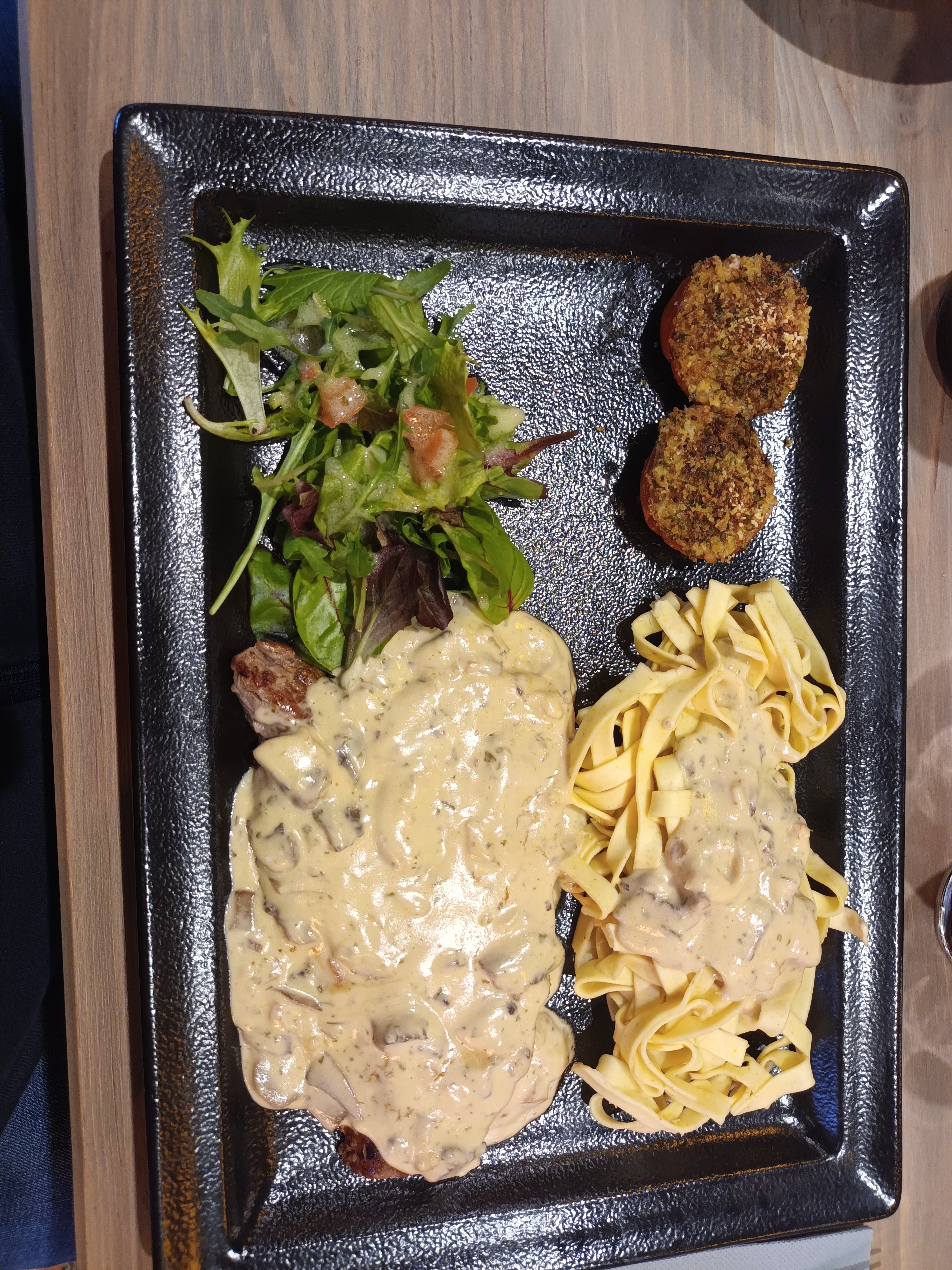 Une belle découverte. Une équipe accueillante, souriante, et professionnel. En entrée, du foie gras maison qui était excellent, avec des escargots. Pour le plat, un risotto poulet ( pour les gourmands, il était bien crémeux, excellent également ) Que du positif. Je recommande cet établissement.
